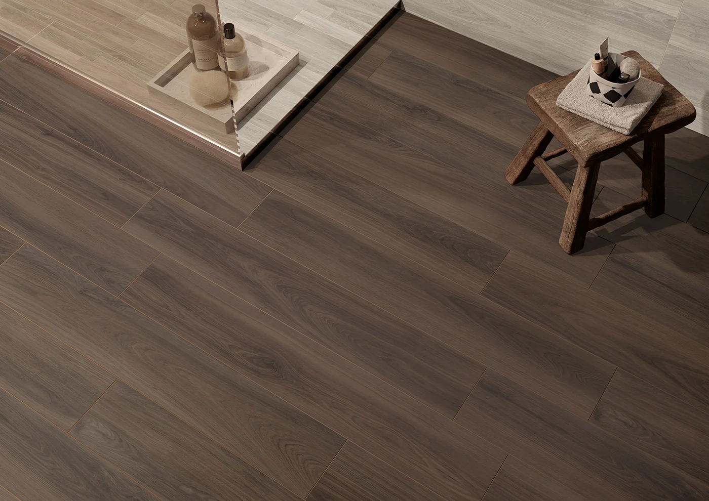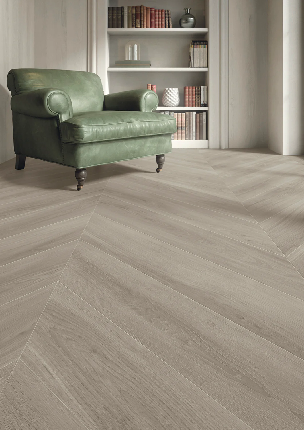 A palette composed of five natural colors captures nature?s variety. Each color is available in 2 sizes:?8?x40? staves, perfectly balanced for any use, and?8?x40? chevron tiles?that create classically elegant surfaces.